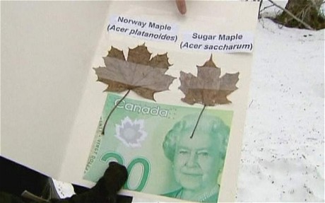 So imagine the anguish, the witch-hunt and the potential for satire when it was announced that according to botanists ‘Canada’s new plastic banknotes feature Norway maple leaves, instead of the Canadian sugar maple leaf’.