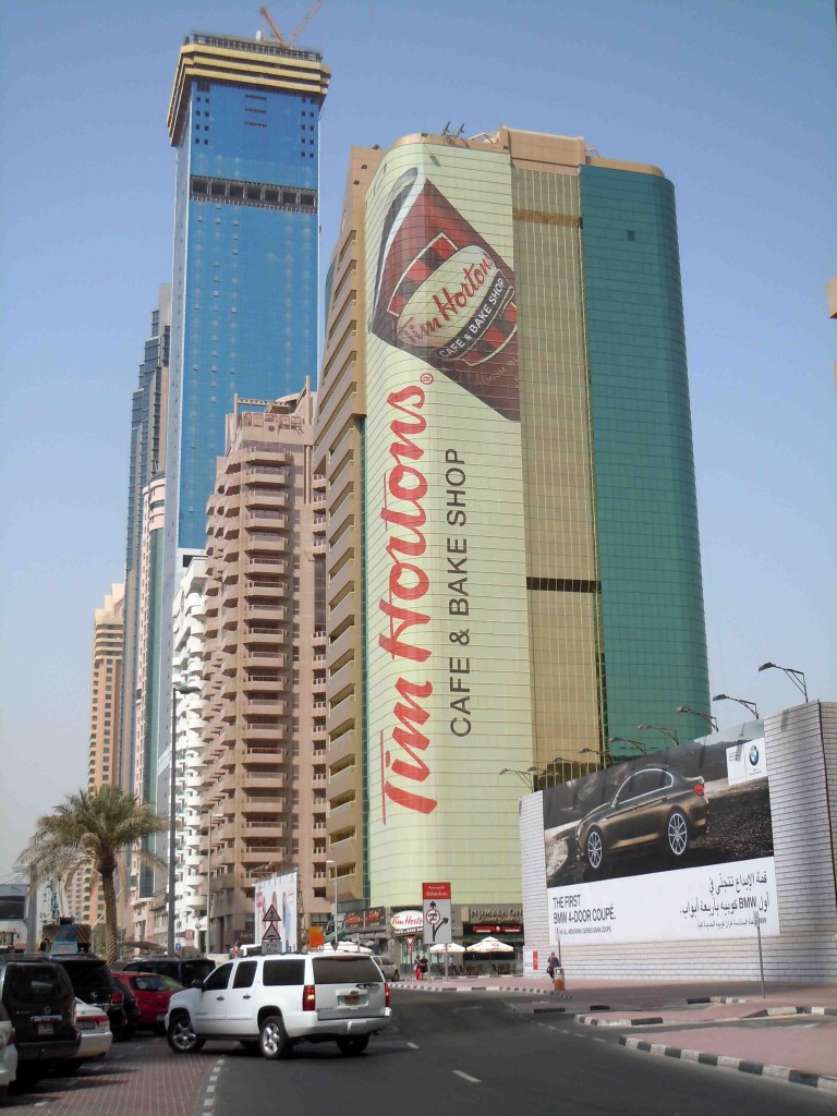 As we started on Sheikh Zayed Road, posters of “TIM HORTONS” , “RAK BANK”, and “AEROPOSTALE” glared at me. Multi – storey buildings had advertisements of these running along their entire length. With these 3 ads having caught my attention, I began to notice how at every 20 feet, on Sheikh Zayed Road, there were advertisements. From food and beverage, to banking to lifestyle, advertisements from each industry infiltrated what people regard Dubai’s skyline. Seeing this influx of information, I began to think of their effectiveness as well as the resulting Visual Pollution.